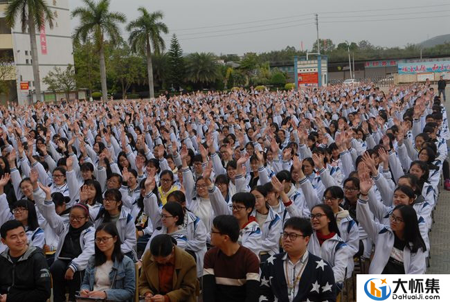 最后,在刘珑老师的引导下,全体同学举起右手进行庄严的冲刺宣誓,大声地喊出自己的等冲刺目标,满怀信心地表达了中考、高考必胜的豪情壮志。历时两个小时激动人心的励志演讲,刘珑老师用生动幽默、慷慨激昂的语言为同学们上了一堂心理辅导课,他那精彩绝伦、感人至深的演讲,唤起了同学们内心深处对成功的渴望,点燃了同学们挑战高考的激情,鼓舞了师生们决胜中考、高考的信心。正如旋律优美、激情豪放的歌曲《我相信》那样:“想飞上天/和太阳肩并肩/世界等着我去改变/想做的梦/从不怕别人看见/在这里我都能实现/大声欢笑让你我肩并肩/何处不能欢乐无限/抛开烦恼/勇敢的大步向前/我就站在舞台中间/我相信我就是我/我相信明天。”
