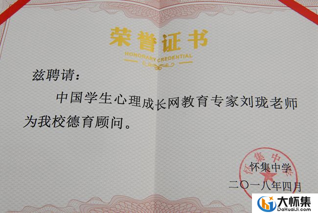 为了加强学校德育工作,促进学生心理健康发展,怀集中学特聘刘珑老师为学校德育心理顾问。陈文爱副校长向刘珑老师颁发证书。 (怀集中学)