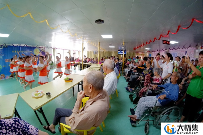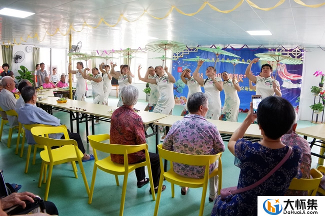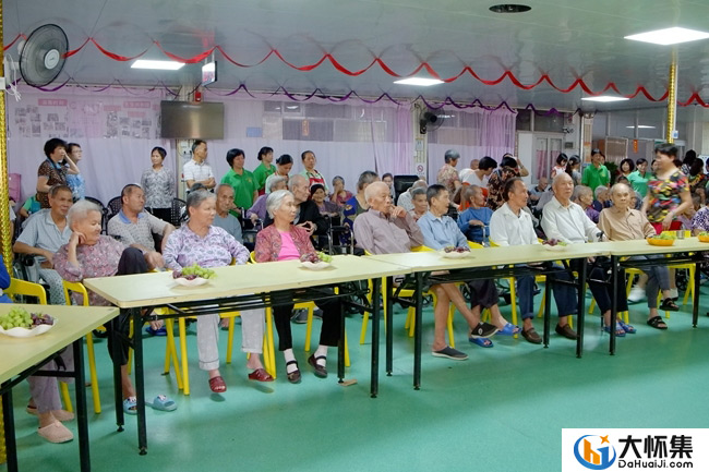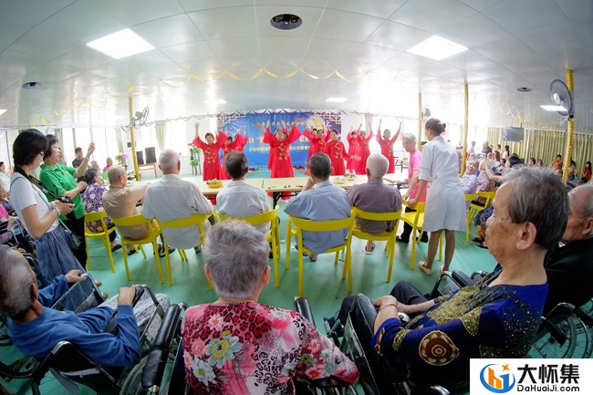 来自连山县的86岁黄亿雄老人虽然有痴呆症,但在护理人员的陪伴下一起合唱《康定情歌》,声音仍较雄亮,尽管有点走音却也令人动容。老人们听着悦耳的歌声,看着优美的舞姿,心情十分舒畅,不时报以热烈的掌声,整个养护院热闹非凡,乐也融融。
