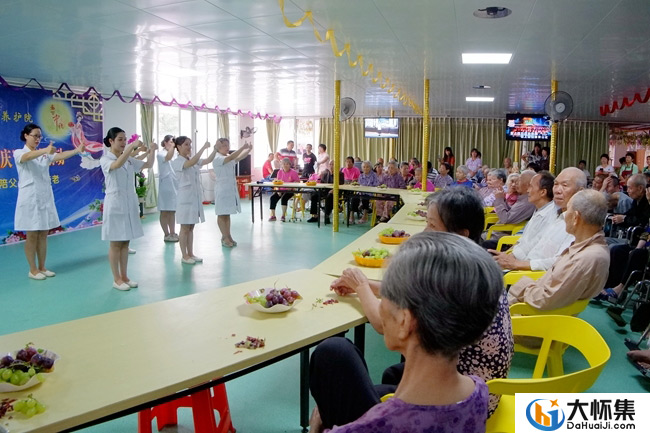 当天上午,老人们或坐轮椅,或由人搀扶, 自始至终观赏合唱、独唱、歌舞等精彩文艺节目演出。联欢活动由12位老人和后勤工作人员合唱《没有共产党就没有新中国》、《社会主义好》歌曲拉开了帷幕。接着,养护院的医务人员、护理人员、后勤工作人员声情并茂地分别合唱、独唱或舞蹈表演《海草舞》、《九九艳阳天》、《真的爱你》、《让世界因你而美丽》、《母亲》、《老妈、您辛苦了》、《感恩的心》等精彩节目。