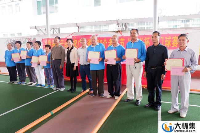 在门球比赛颁奖仪式上,县老干部局、县老体协、门协和赞助单位负责人分别为获奖队伍颁奖。 我县举行“老人节”体育活动,目的是活跃老年人的文体生活,增强老年人的身体素质,推动老年人体育运动发展。(谭扬汉 梁深然)